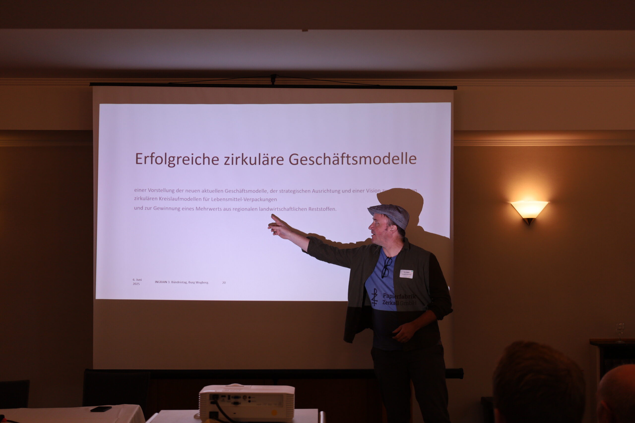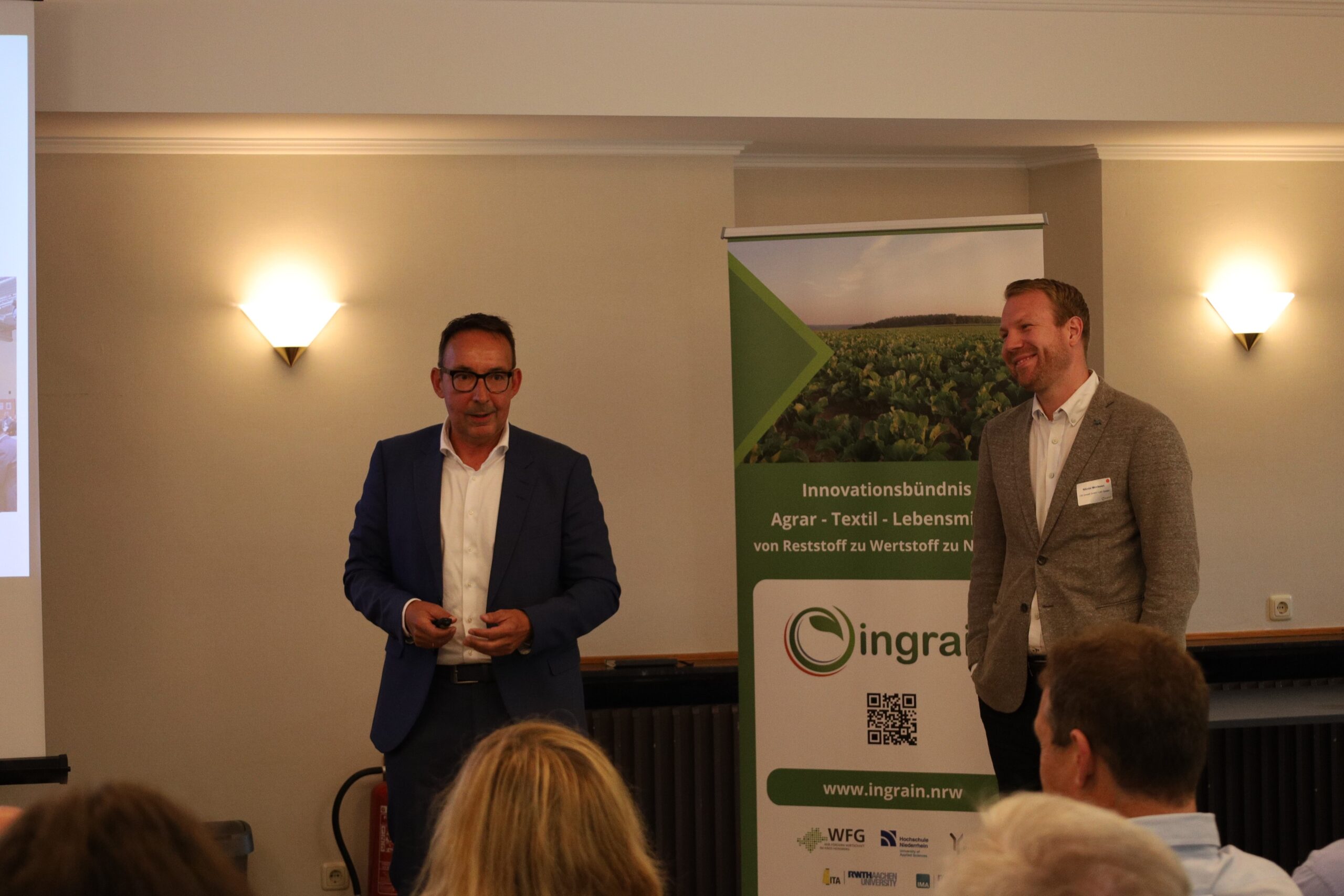 In der Keynote warfen Ulrich Schirowski und Nikolai Mevissen (CM Umwelt GmbH & L2C GmbH) einen Blick auf die strategische Zukunft des Bündnisses. Die INGRAIN-Vision für die Jahre 2025–2050 unterstreicht den Übergang von Forschung zur Anwendung – mit verstärktem Fokus auf Praxistransfer, Sektorkopplung und smarte Reststoffnutzung. Als anschauliches Beispiel diente das von Nikolai Mevissen vorgestellte Vorhaben der L2C GmbH zur industriellen Produktion von Insektenmehl und -öl auf Basis der Schwarzen Soldatenfliege.