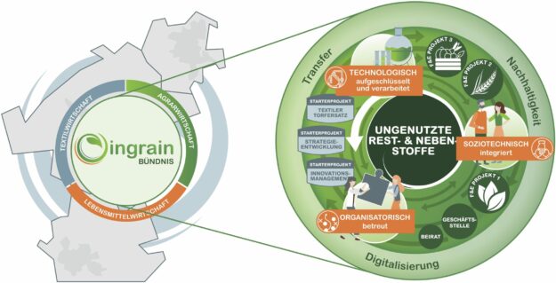 Das Innovationsbündnis „Spitze im Westen: Agrar-Textil-Lebensmittel – von Reststoff zu Wertstoff zu Nährstoff“ (kurz: INGRAIN) wird in den nächsten Jahren zahlreiche Aktivitäten zur Etablierung einer biobasierten Kreislaufwirtschaft im Kreis Heinsberg und der umliegenden Region durchführen. Über die Förderwürdigkeit dieser Vorhaben entscheidet der transdisziplinär besetzte INGRAIN-Beirat.